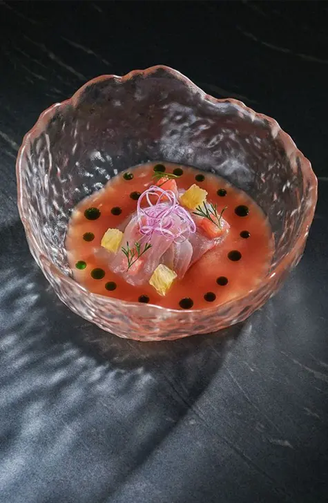 Su cocina siempre está transformándose. Agrega sabores globales y locales, reinterpreta y evoluciona, utilizando técnicas de diferentes partes del mundo, pero siempre inspirándose en la vasta despensa de nuestra diversa Colombia.